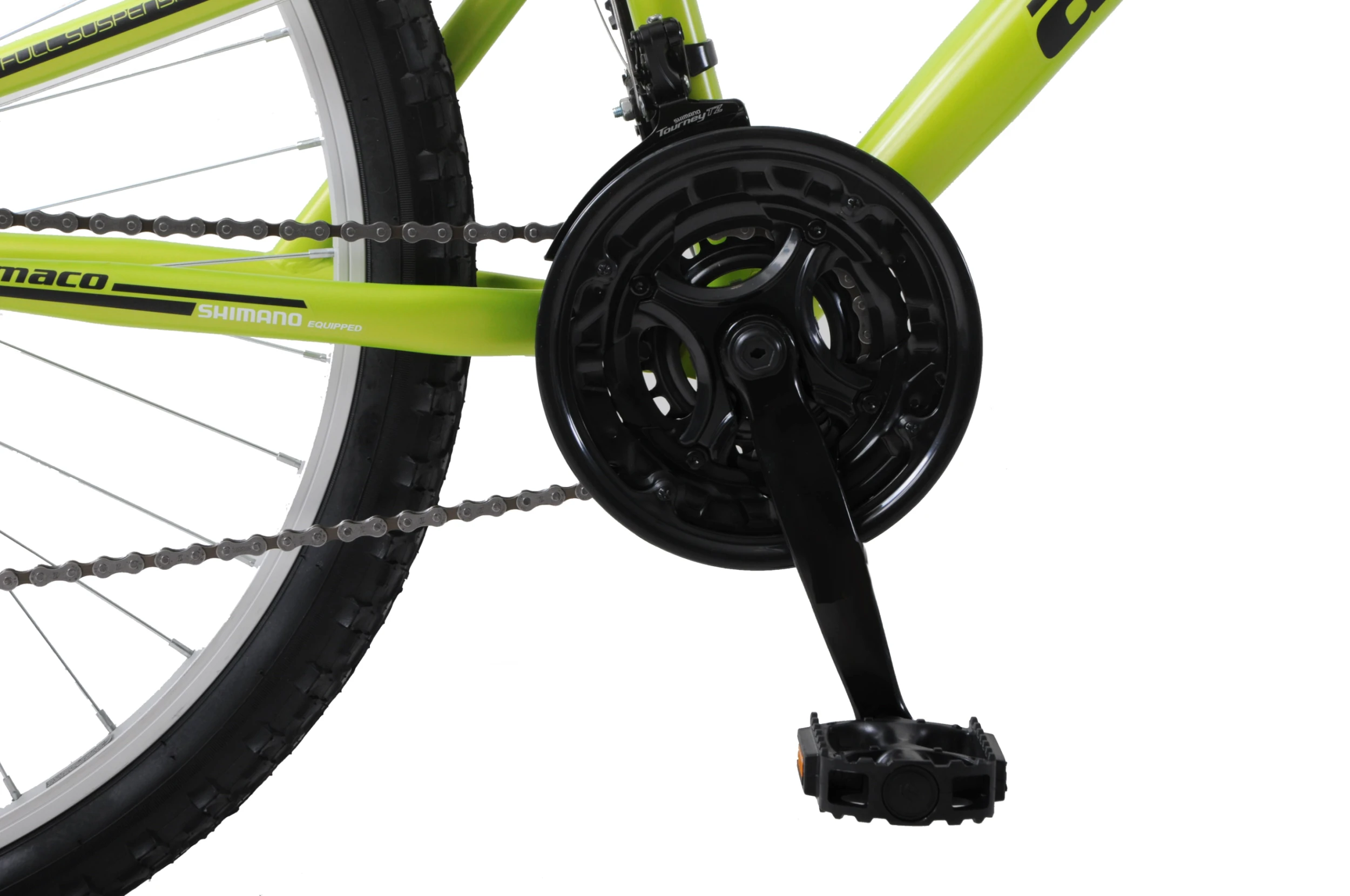 The Ammaco Summit is designed to maximise fun! The bike is equipped with 18 gears which delivers personalized gear choices that take you as far and wide as you want to go. The bike is finished off with V-brakes for reliability and consistency you can count on for controlled stopping in all conditions. The front and rear suspension is there for a comfortable ride and topped off with a foam saddle.