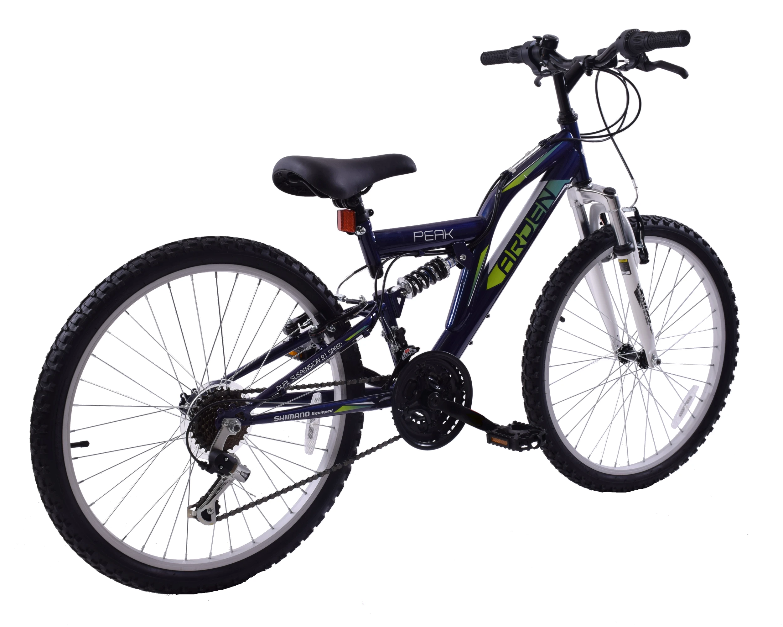 The Arden Peak is built around a strong hi-tensile dual suspension frame set featuring adjustable rear suspension and front suspension forks and is ideal for paths, tracks and trails.