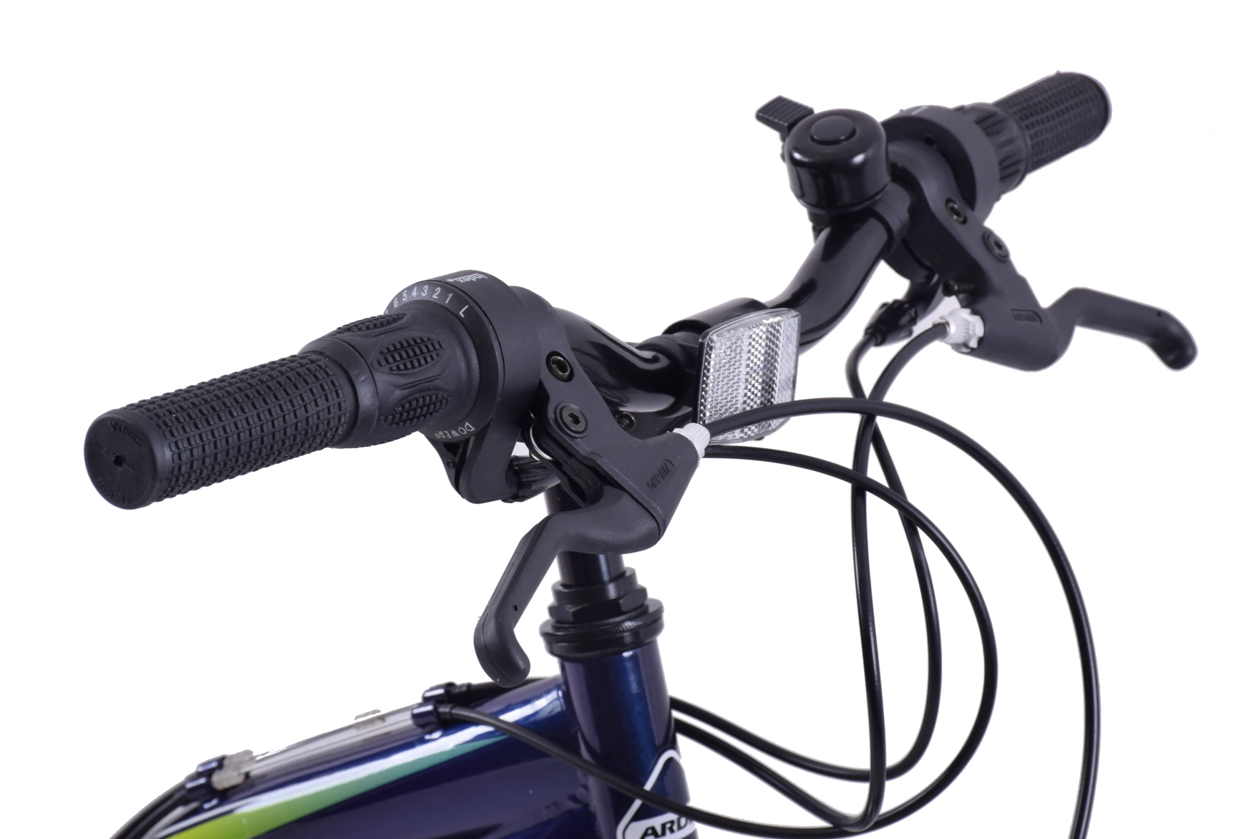 It has 21 speed gears and twist grip gear shifters. Adjustable handlebars and saddle so you can fine tune for the perfect height for a comfortable ride.