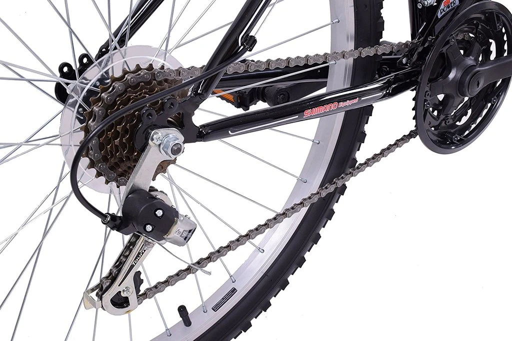With a classic, MTB style frame and fork, the Arden Trail mountain bike features 21 speed gears with a rotational gear lever. Front and rear V brakes give a high degree of control and an adjustable saddle and handlebar lets the bike grow with the rider. 24-inch silver alloy wheels complement the look. A cool black and red frame cuts a stylish figure suitable for teenagers and younger riders.