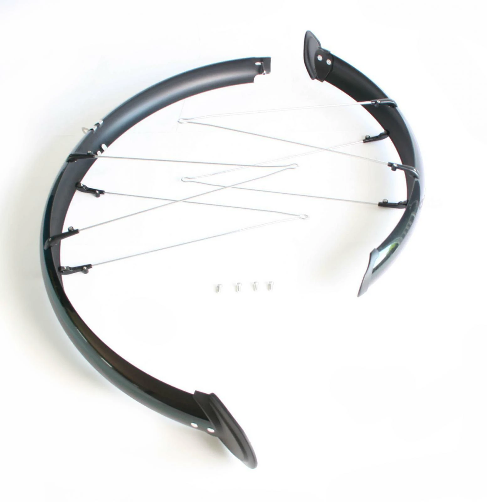 Modern mudguards often barely cover you from dirt but these cover a large portion of the wheels which means total protection from mud and water. They have improved protected ends to withstand the bike being dropped of bashed into walls etc. and double stainless steel v-stays means more rigidity for the mudguard while last twice as long from the weather. The clips have been redesigned for easier installation and a more seamless and smoother design.