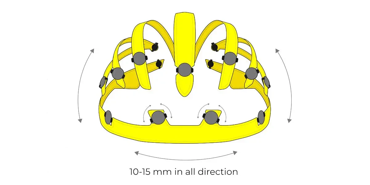 MIPS Air Technology: MIPS Air is a rotational management system (RMS) that is specifically developed and designed to be the lightest system possible to help reduce rotational energies otherwise transferred to the head during an impact or crash. The MIPS Air technology is integrated into the padding of the helmet and enables the 10-15mm of relative movement between the energy absorbing layer and the padding. The relative movement of the MIPS Air is enabled by a backing of polycarbonate PC with a special low friction treatment, which is held by specially designed fixations, enabling movement in all directions.