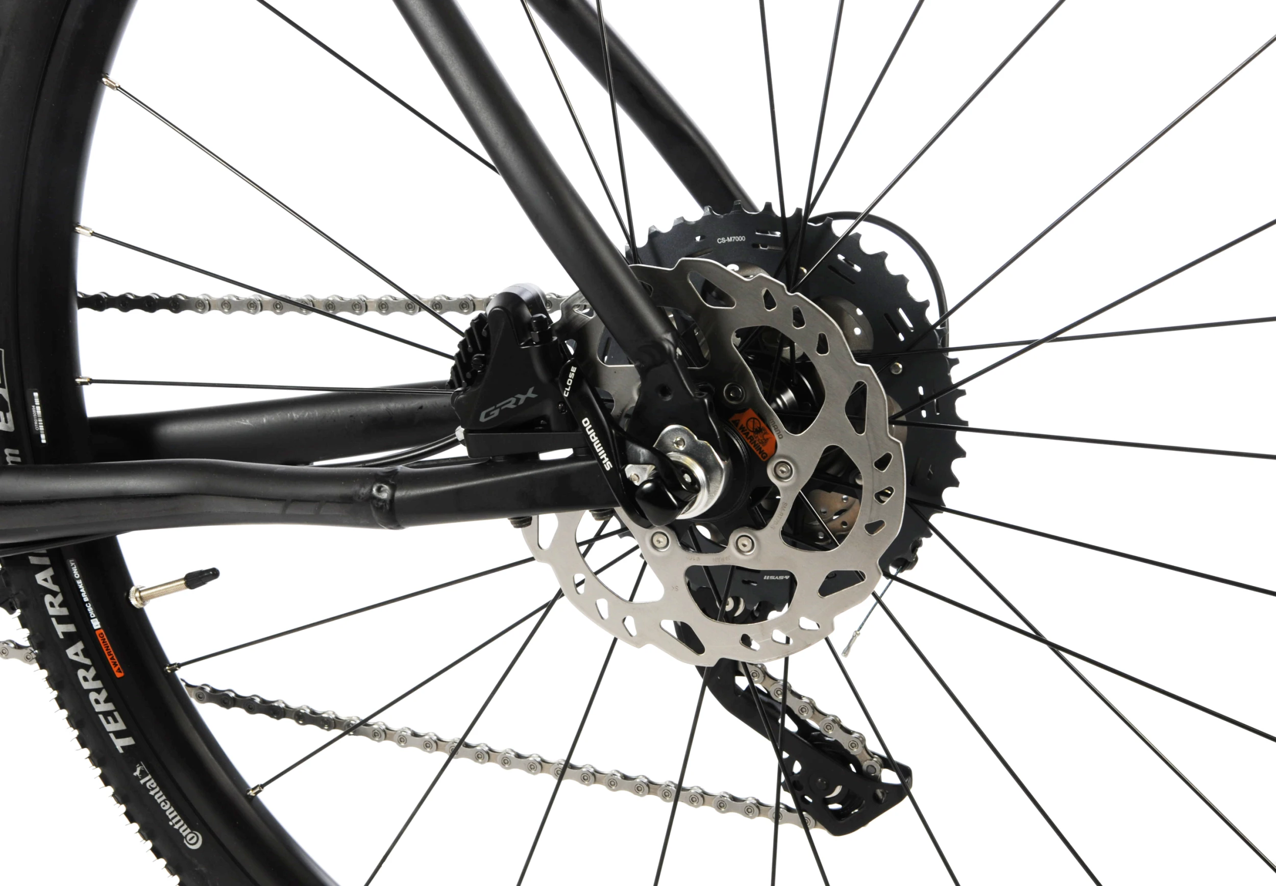 Robustness and reactivity are offered via the Shimano RS wheelset with its strong, wide rim being complemented perfectly by the Continental Terra Trail tyres to provide traction and compliance. At the same time, the Shimano 2 x 10 speed gears provide a wide range of ratios to tame any terrain.