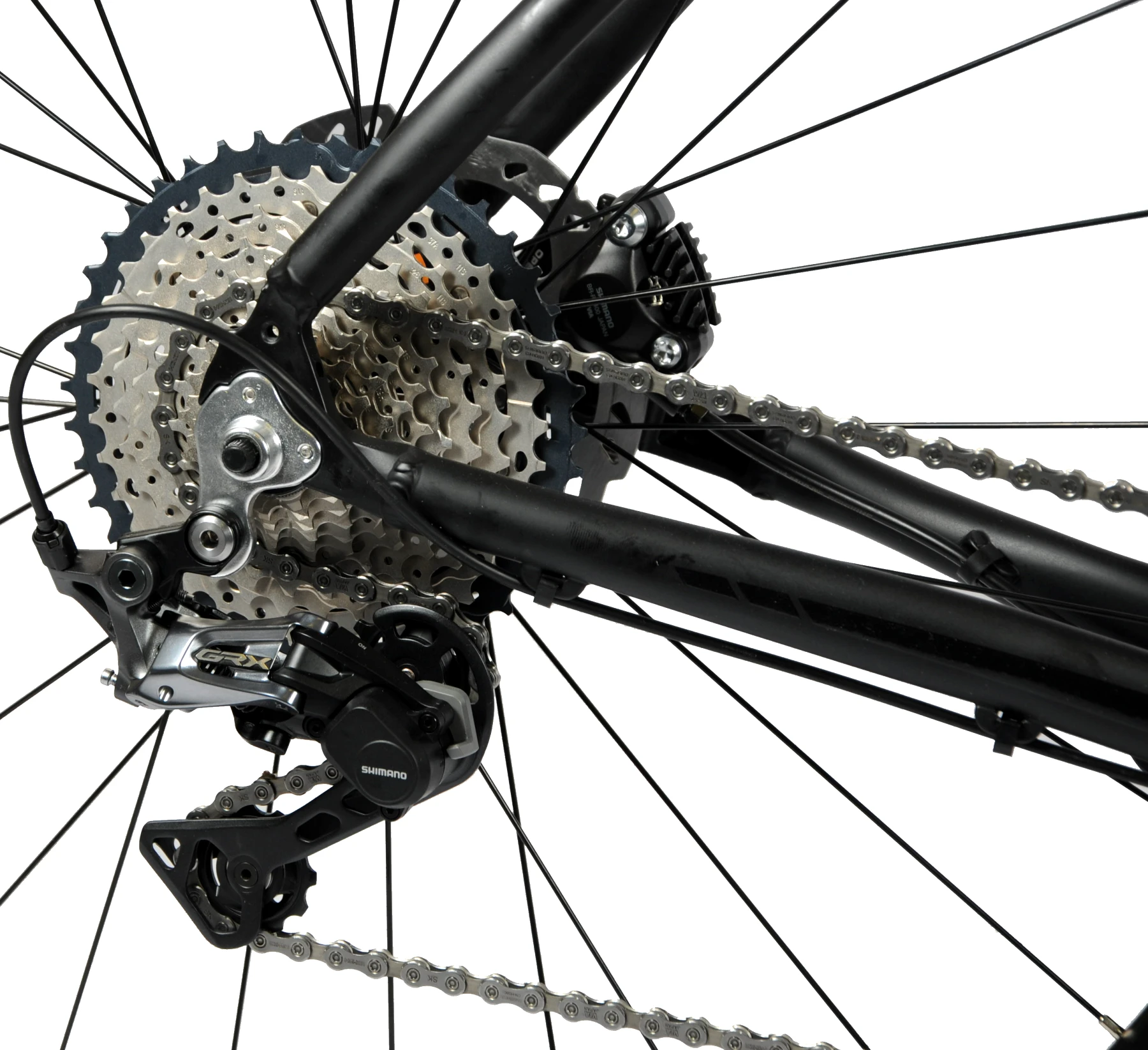 The Shimano GRX hydraulic disc brake configuration completes an extensive spec list for confidence in wet weather or across technical terrain via its accurate and smooth stopping power.