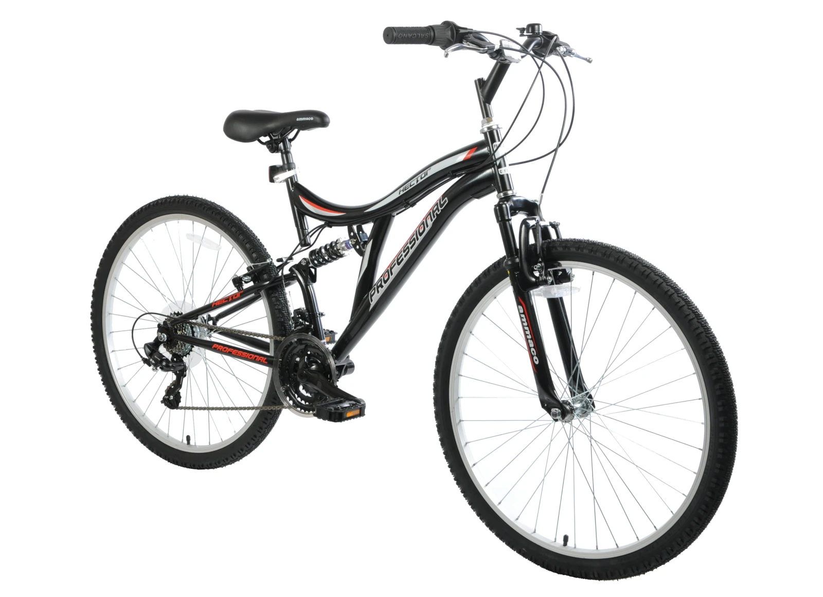 The Professional Hector full suspension mountain bikeis the perfect choice for those who are looking for something for occasional leisure rides. It comes complete with 21 gears to help you up tough inclines, and reliable V-brakes can always be depended on to help you come to a stop. A savvy choice for those new to mountain biking, the Professional Hector full suspension mountain bike is a dependable ride.