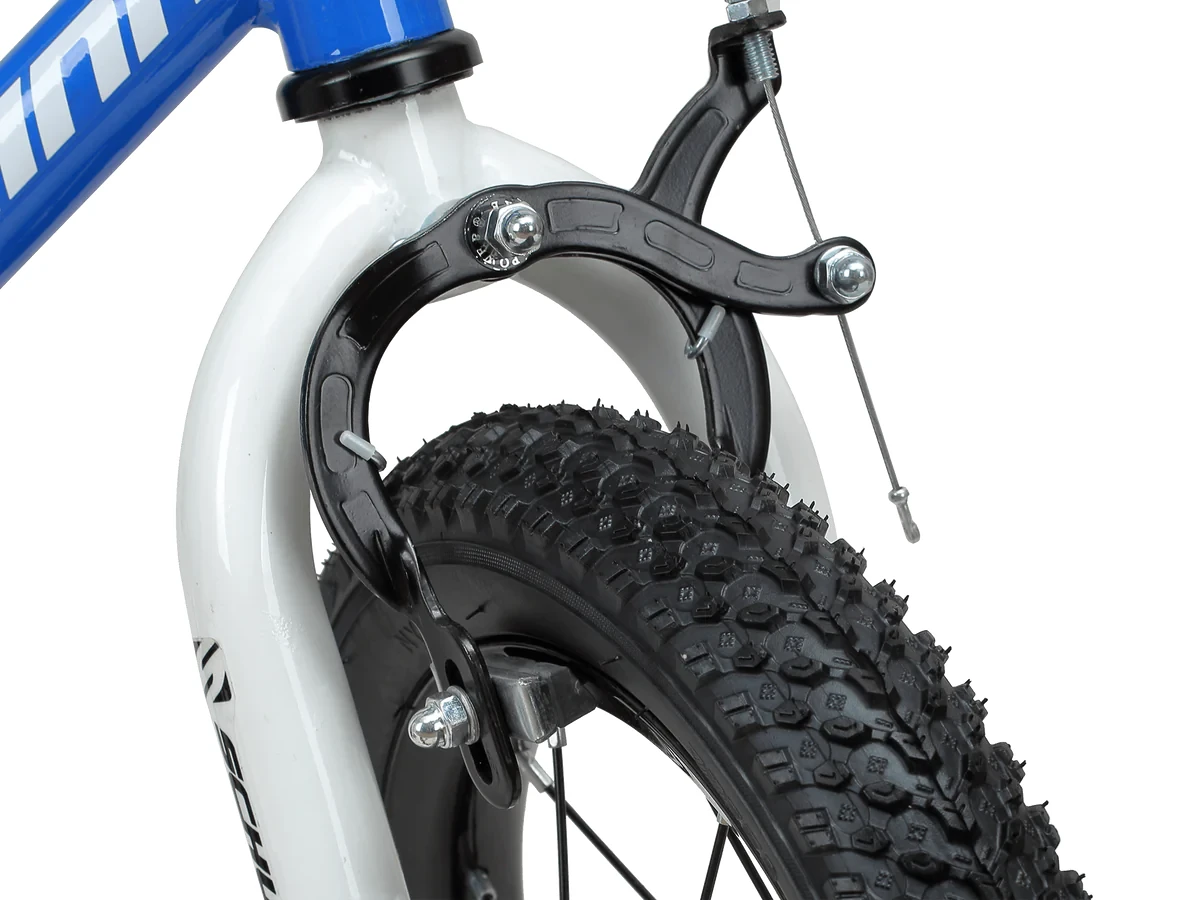 Includes front and rear caliper brakes. (hand-brake like adult bikes)