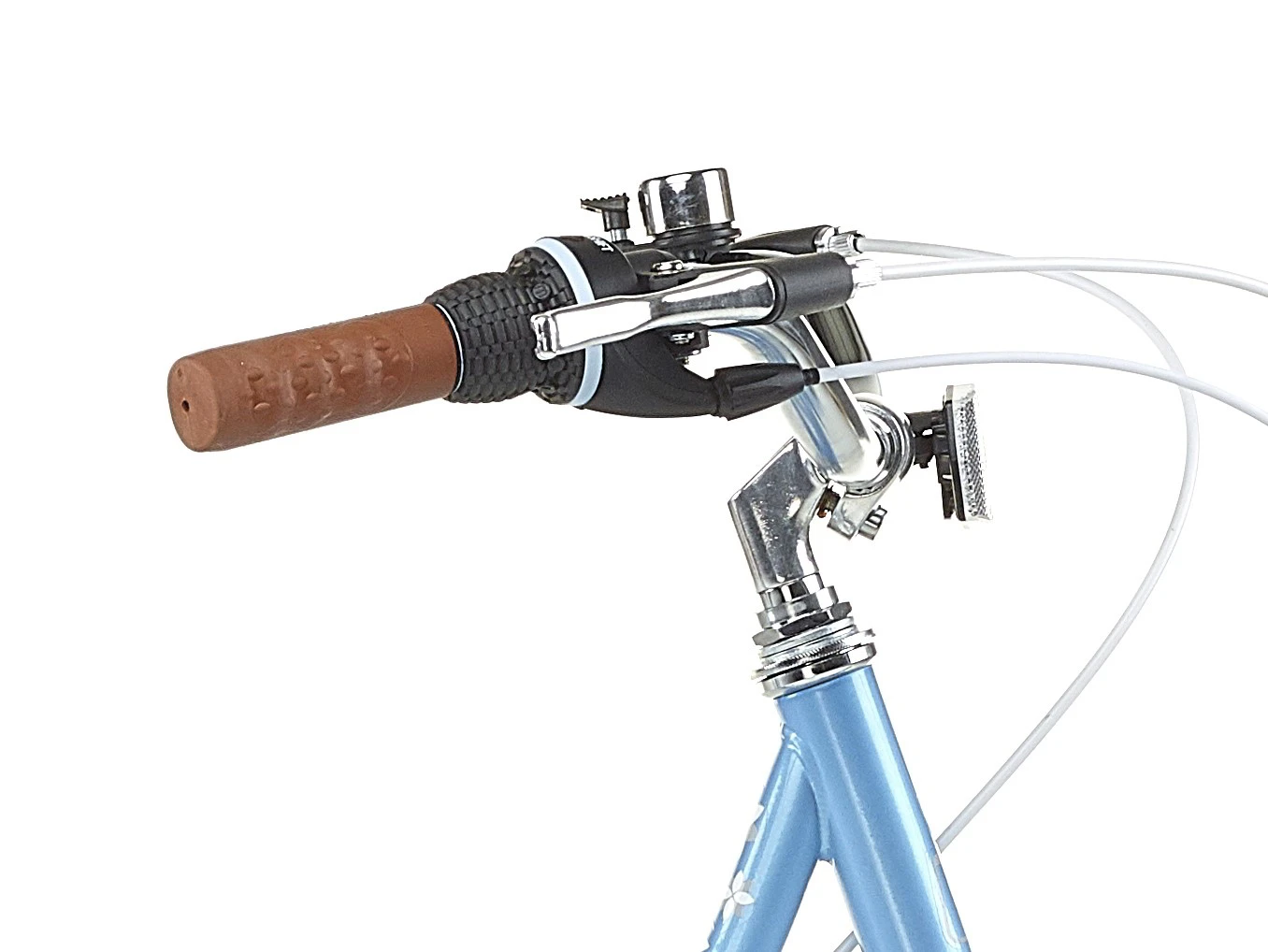 Weather its a ride to the city or a countryside jaunt with friends, the Paloma has you covered with 6 speed gears, powerful V brakes for confident stopping in all conditions and a strong hi-tensile steel frame with a low step over design. The Retro style swept-back handlebars replicate vintage cycling history, combined with silver lightweight alloy rims, twin steel mudguards and wide Kenda tyres for enhanced grip on road and trail surfaces.